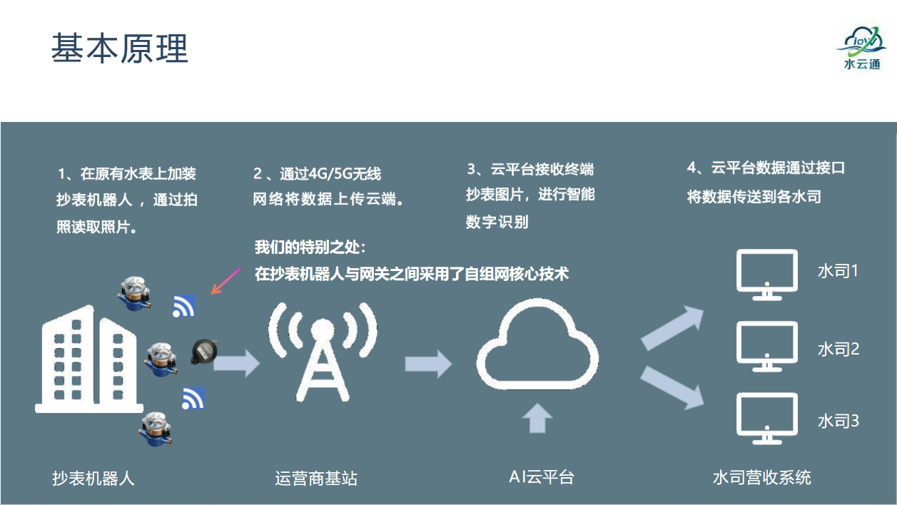网关集中器是抄表机器人采集水表读数后,承接抄表机器人和后台服务器通讯的智能终端。